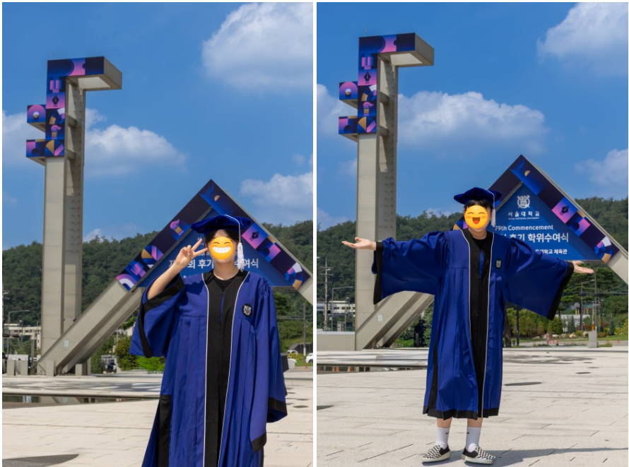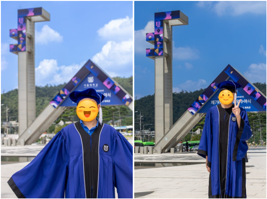 몇 년 뒤 진짜로 이 학사모를 쓰는 순간으로 이어지길 바라는 소중한 장면이었습니다.