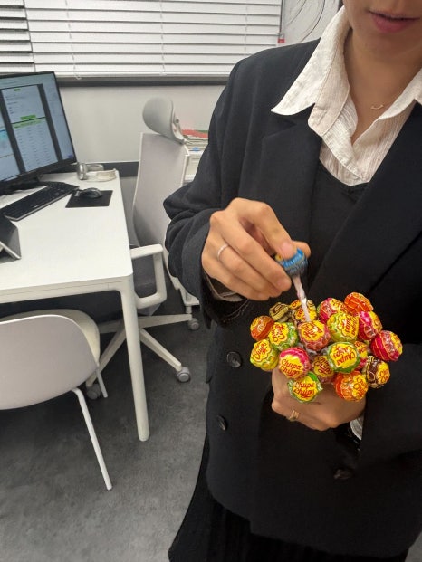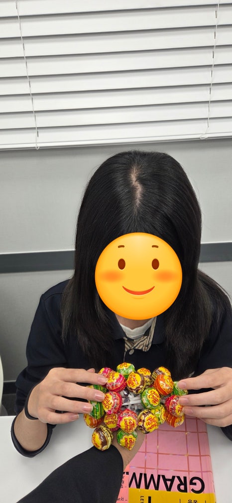 참가상으로 달콤한 막대사탕을 받았습니다.