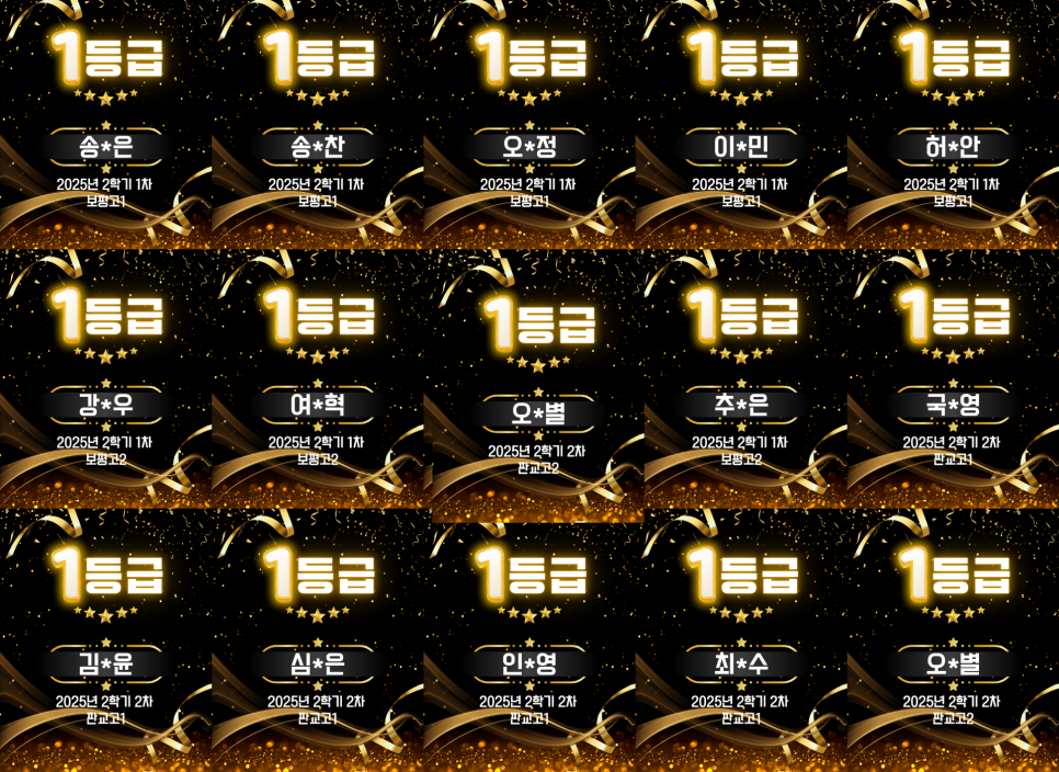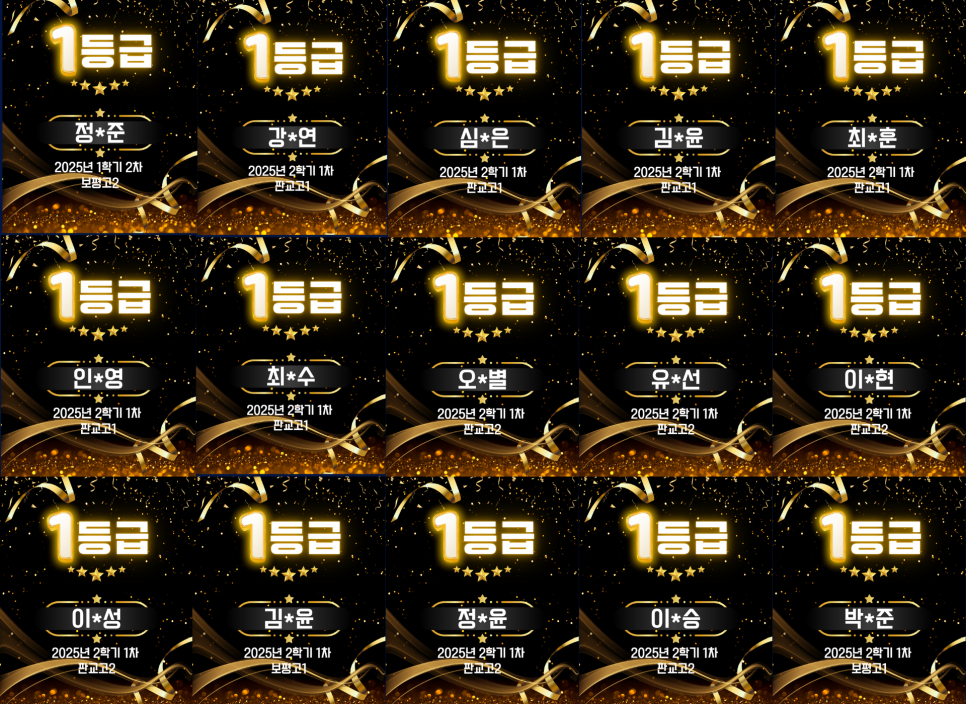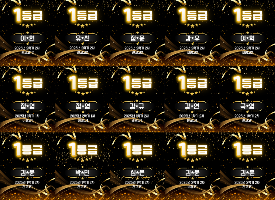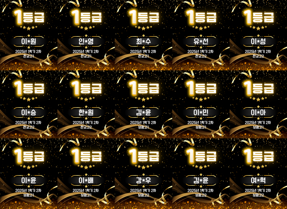 1차 성적에 만족하지 않고, 수행평가와 2학기 성적까지도 잘 챙겨 등급을 바꿔준 우리 친구들 정말 수고 많았습니다 :)