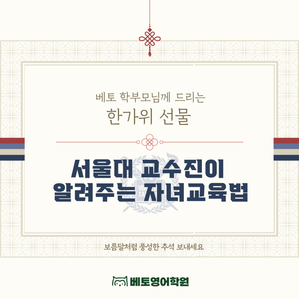 풍성한 마음과 함께 부모님의 교육력까지 풍성해지는 기회를 베토영어가 준비했습니다.