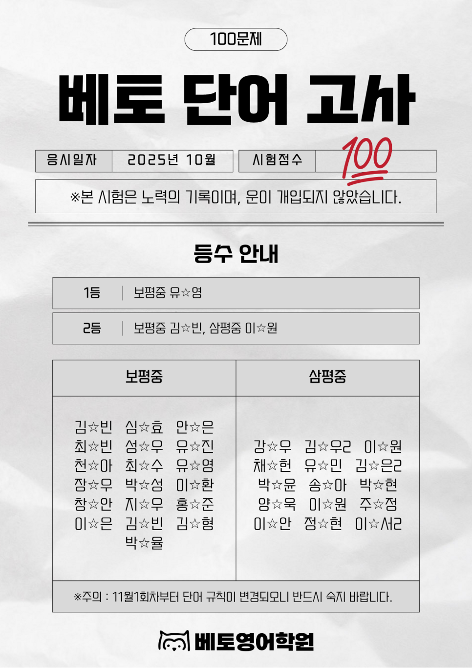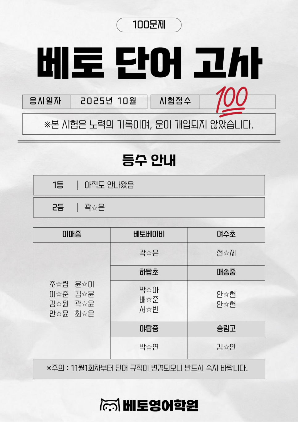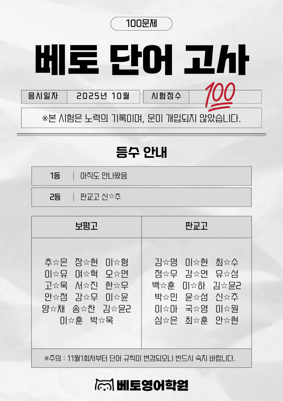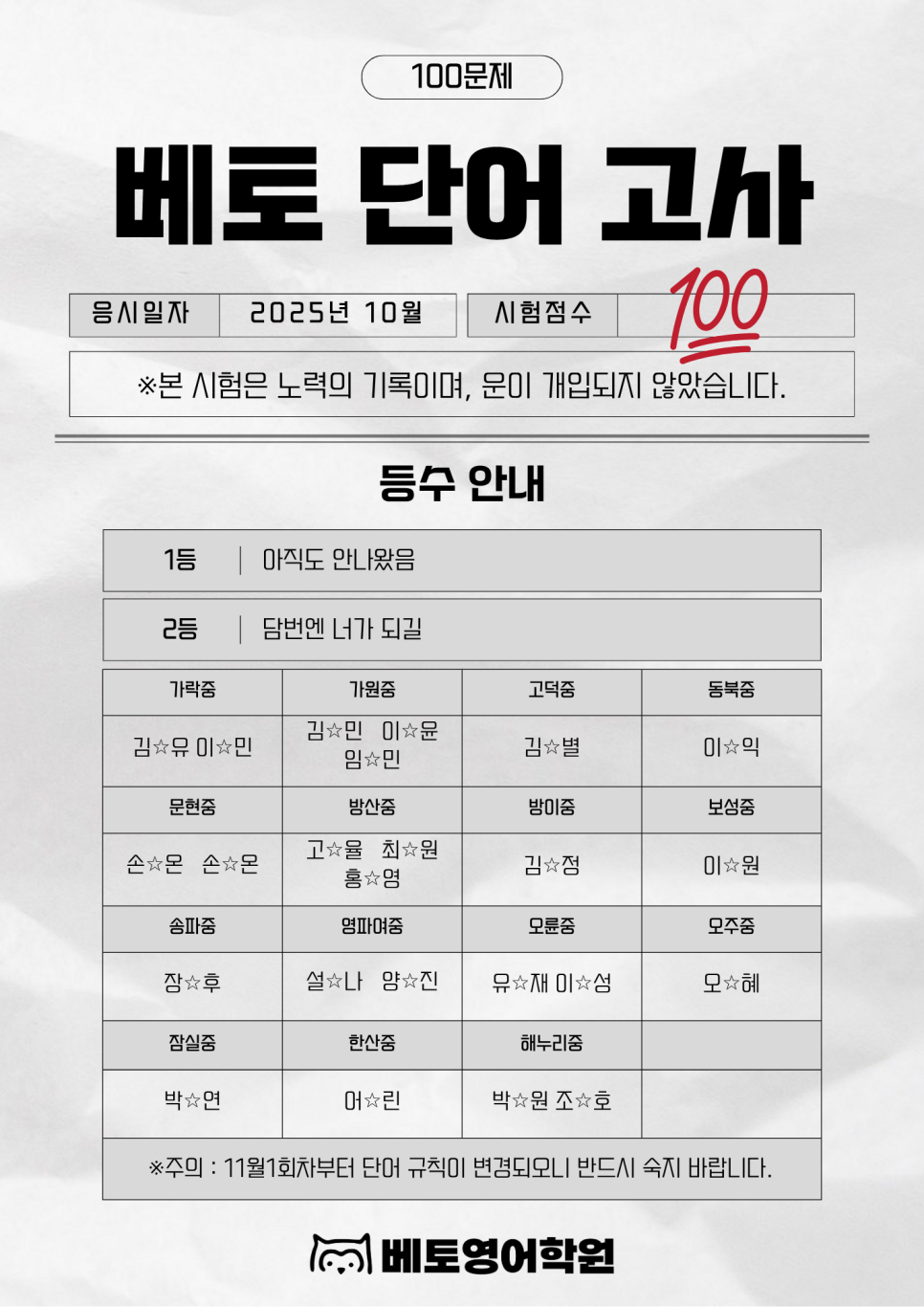 10월의 단어시험은 단순한 테스트가 아닙니다.