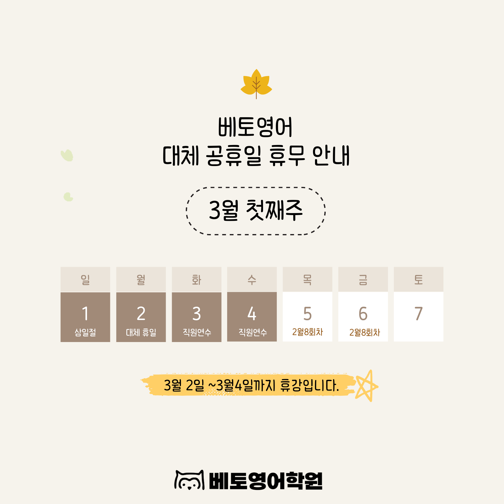 ▶ 휴강 기간: 2026년 3월 2일(월) ~ 3월 4일(수)