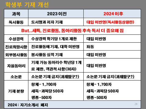 현재 독서활동은 대입공정성강화방안에 의거하여 학생부에 기재는 되지만 실제 대학 입시에 반영되지는 않...