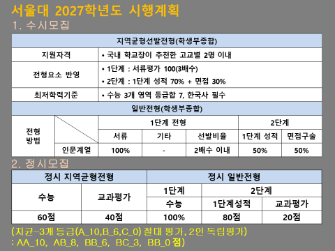 1. 서울대 2027학년도 변경사항