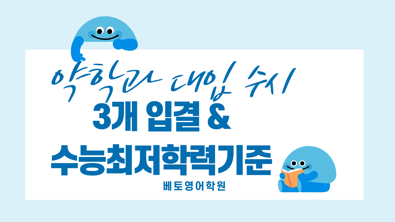 약학과 수능최저학력기준은 중앙대 지역균형 4개 영역 합 5처럼 최저학력기준을 높게 요구하는 대학도 있고 강원대, 제주대 4개 영역 중 3개 영합 합7 처럼 조금 낮게 요구하는 대학도 있습니다.